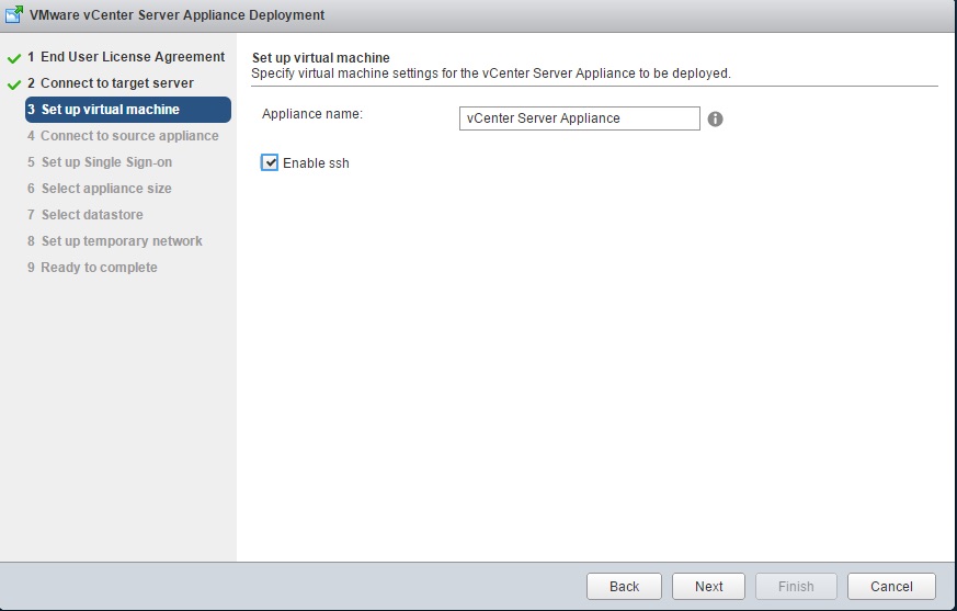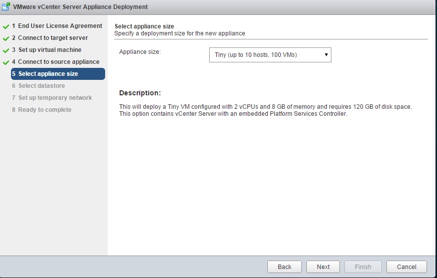 The only part that you need to be cognizant is that of the Database connections. Most customers are using Microsoft SQL for Windows as the primary ODBC source. The appliance does not have that capability to use Microsoft SQL databases, therefore, you must utilize the embedded Postgres or you can use Oracle. One of the more common questions I get about this is a migration path from vCenter on Windows to the VCSA. Unfortunately, there is no direct migration, however, the new “Cross-vCenter VMotion” offers you the flexibility to migrate to the new appliance without any downtime for Virtual Machines and Hosts. This will offer you flexibility and make it much easier than previous methods (cold migration).